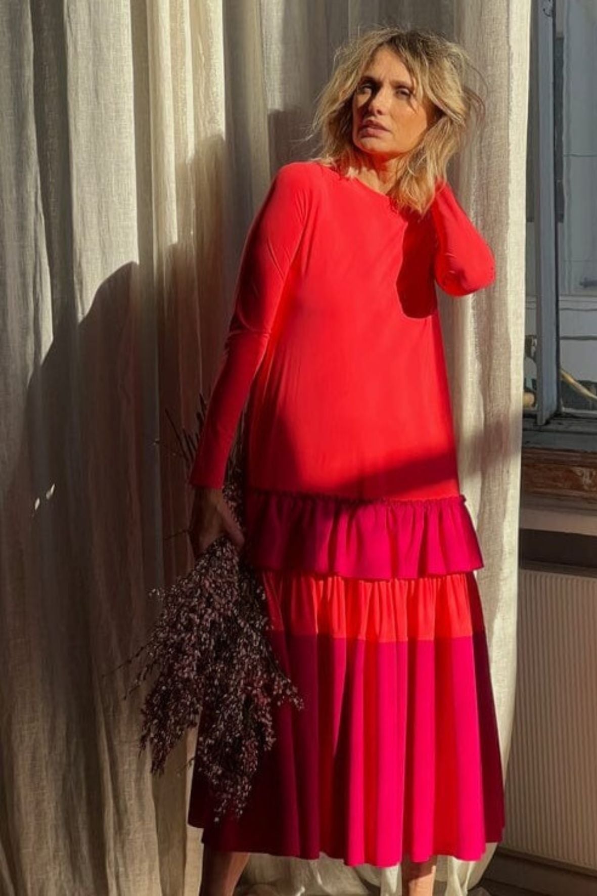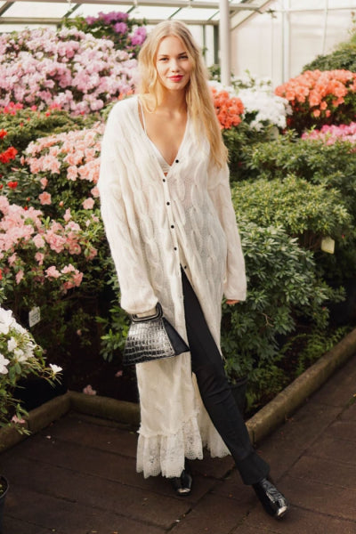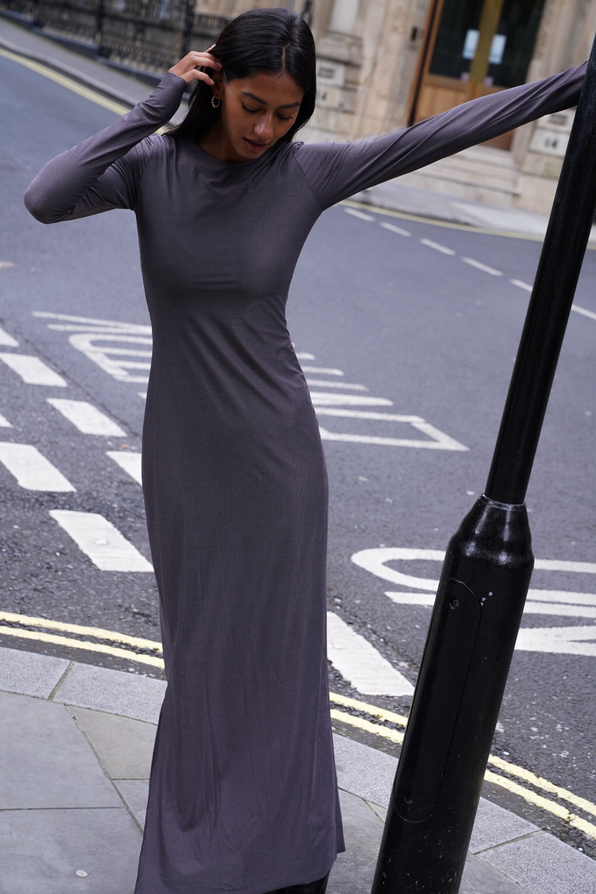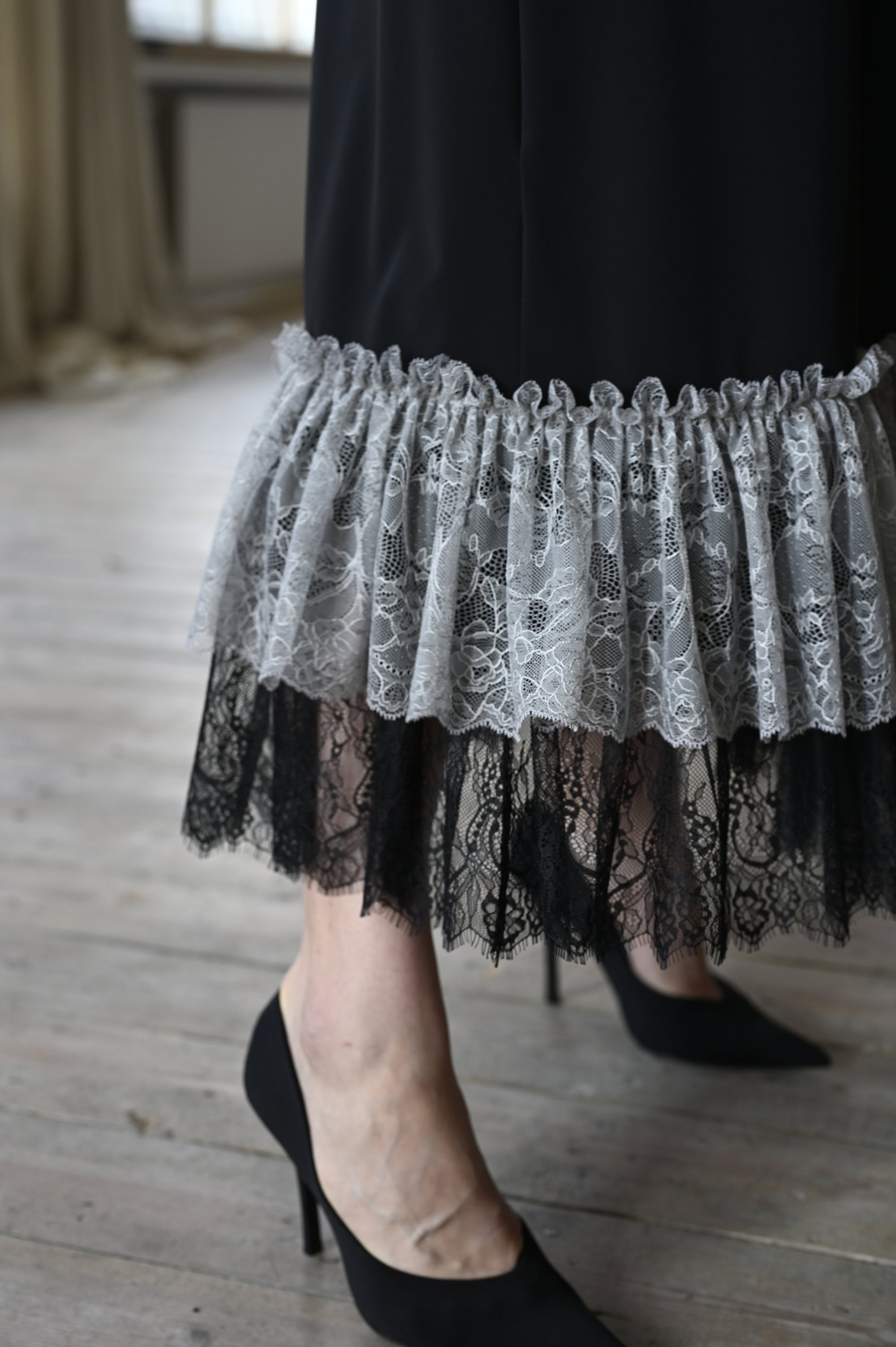 Pelēka mežģīņu vilnas kleita, kas mūs turēs kopā